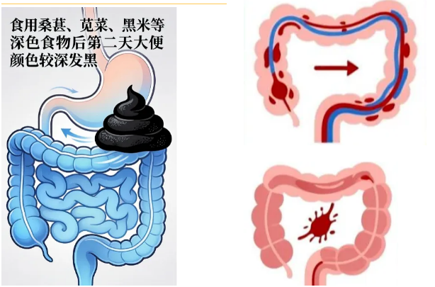 • 食物因素:食用较多桑葚、苋菜、黑米、血肠、血旺、鸭血、羊血、猪肝等食物,第二天大便会出现颜色较深发黑。